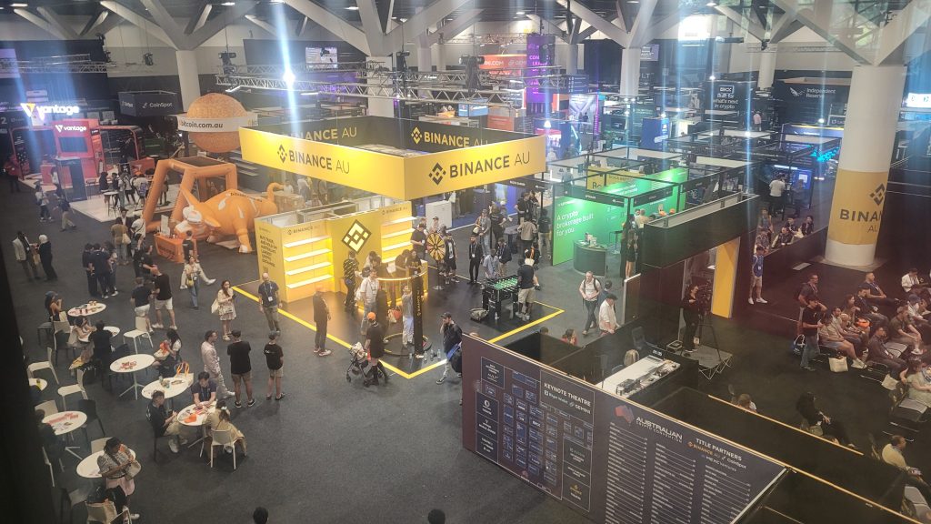 Most ads and lectures seemed to be focussed on using crypto as an investment. A handful of talks were about purchasing crypto in a Self-Managed Super Fund (similar to a 401(k) in Australia) and the many regulations involved. As is typical in crypto, there were companies with decent products while using their own blockchain/token and planned mint schedule (e.g. 3ULL, GHST). I spoke to Private Pay who seemed to be a crypto-friendly bank/custody service still in start-up phase. Well-know exchange Binance, had the biggest, most adventurous activities. Visitors who completed their five physical challenges (hodl bar, soccer table etc) entered a prize draw. Some lectures mentioned AI use, but I didn’t hear anyone explain its relevancy with crypto. Perhaps just that they are both recent technologies. Stand with Crypto (@StandWCrypto_AU), a pro-crypto policy advocacy group, were present with a both. There were also a few trading platforms (which I assumed were custodial).